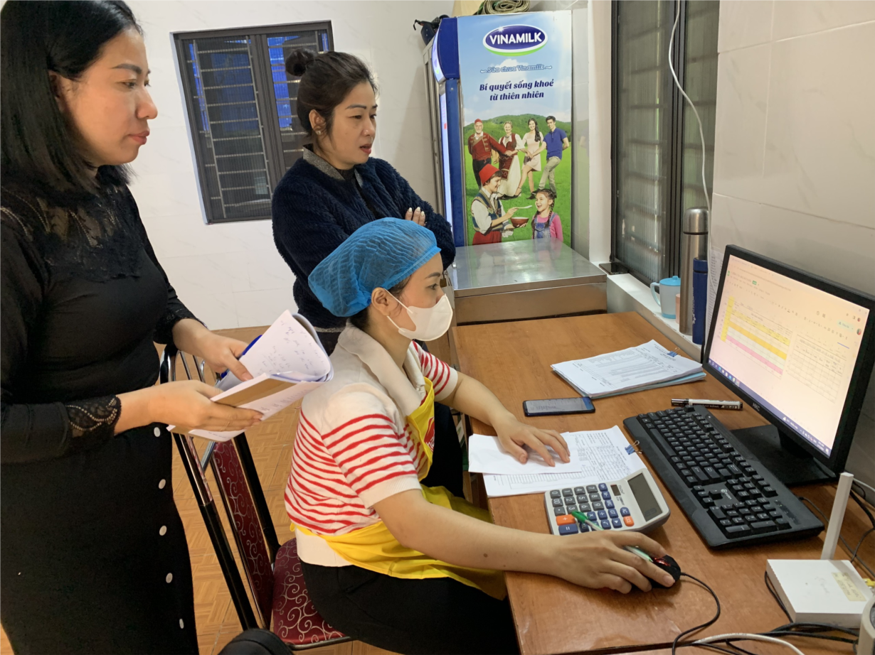 * Nội dung: Kiểm tra hoạt động nấu chính: sơ chế - chế biến món ăn cho trẻ, tính định lượng khẩu phần ăn, HSSS, thực hành ƯDCNTT trong tính khẩu phần ăn cho trẻ, cập nhật và quản lý HSSS