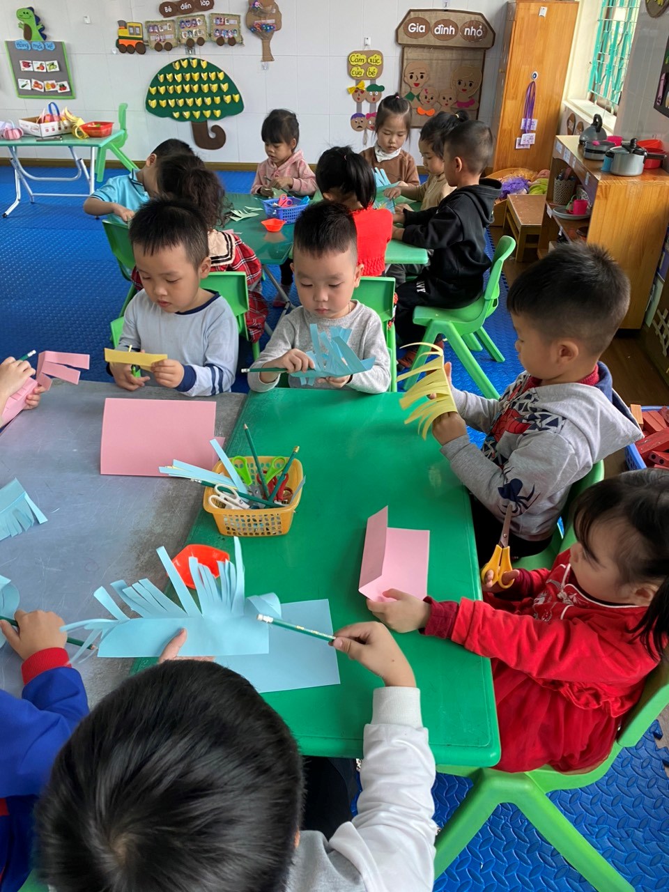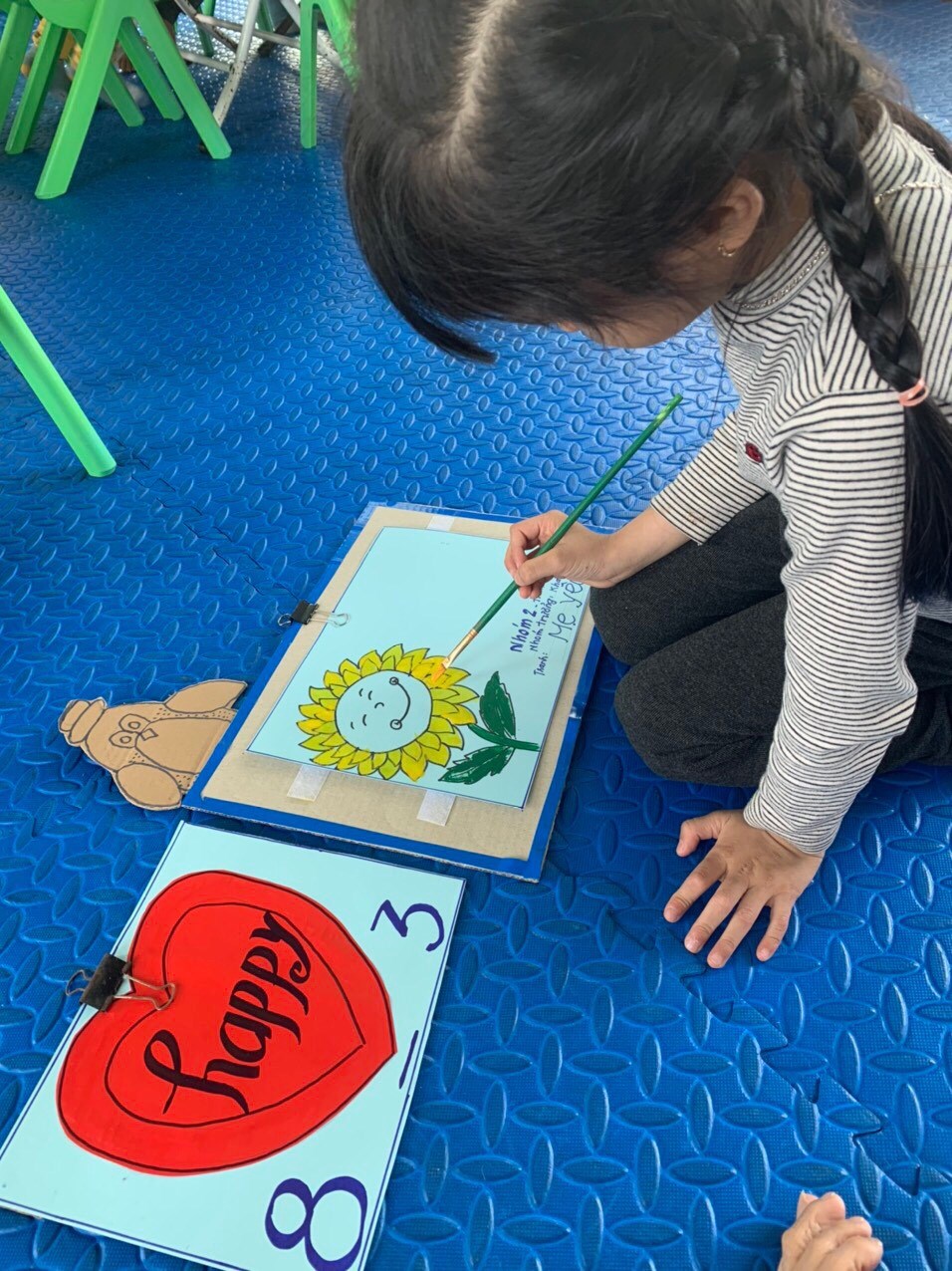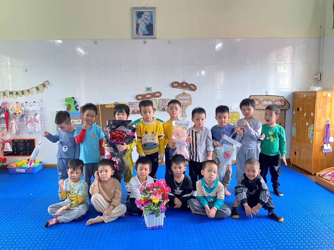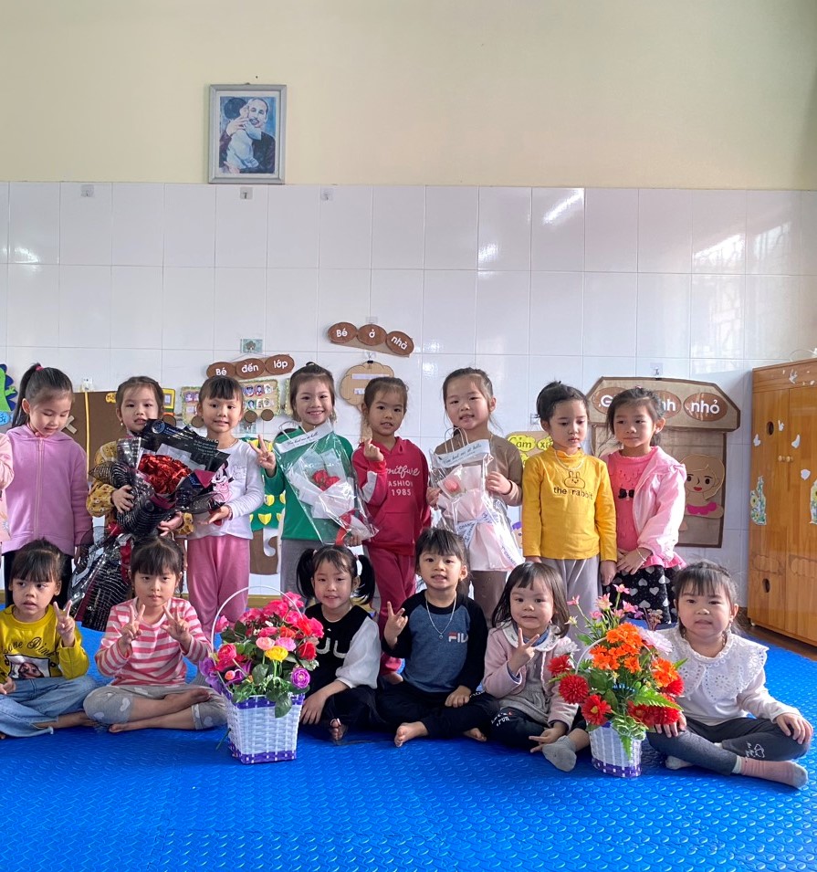 Không khí mừng ngày 8/3 tại trường và các lớp thật là vui vẻ và hân hoan. Ngày 8/3 trở nên thật ý nghĩa với những người phụ nữ mà bé yêu thương khi chính tay các bé tự làm những giỏ hoa, những tấm thiệp cùng với những lời nhắn nhủ, tâm sự "Con yêu mẹ", "Con yêu bà".