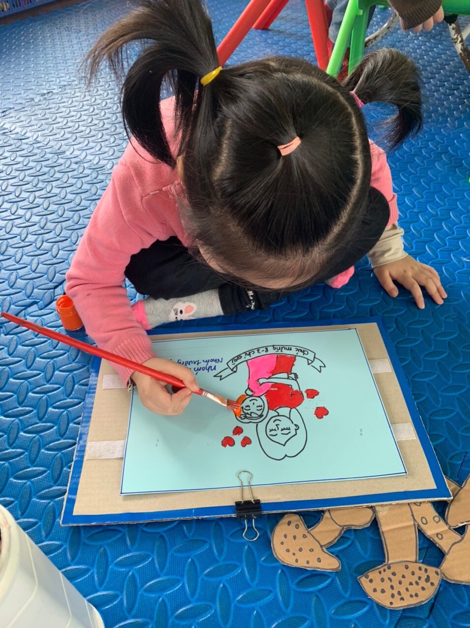 Cô giáo hướng dẫn và làm nhiệm vụ kết nối những trái tim, những món quà ngộ nghĩnh do chính những bàn tay nhỏ làm nên để tặng mẹ, tặng bà... đó là những món quà tinh thần vô giá. Chắc hẳn mẹ và bà sẽ rất vui và hạnh phúc khi nhận được những món quà đầy yêu thương từ những thiên thần nhỏ đáng yêu của gia đình mình.