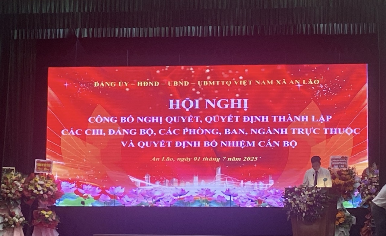 Thường trực Đảng ủy tổ chức Hội nghị công bố các quyết định của Ban Thường vụ Đảng ủy, Ủy ban nhân dân xã về việc thành lập và bổ nhiệm cán bộ các Chi, Đảng bộ trực thuộc; các cơ quan tham mưu giúp việc Đảng ủy, Trung tâm Chính trị, các phòng thuộc Ủy ban nhân dân xã, Trung tâm phục vụ Hành chính công xã An Lão.