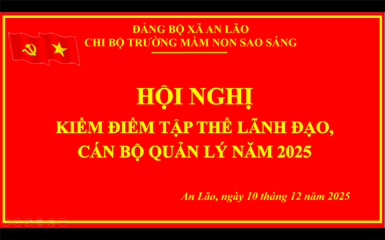 Sáng ngày 10/12/2025, trường Mầm non Sao Sáng long trọng tổ chức "Hội nghị kiểm điểm tập thể lãnh đạo, cán bộ quản lý năm 2025" nhằm đánh giá kết quả thực hiện nhiệm vụ trong năm 2025, đồng thời đề ra phương hướng hoạt động cho năm 2026.