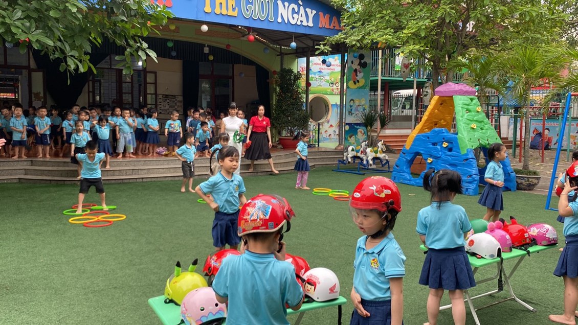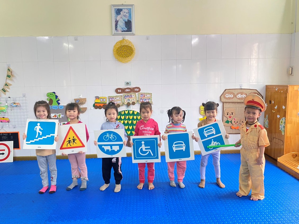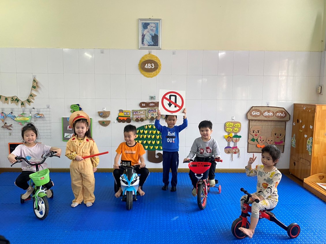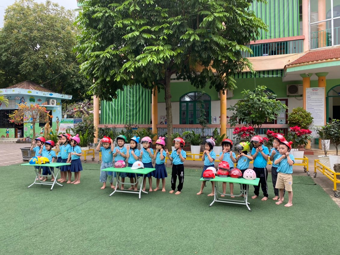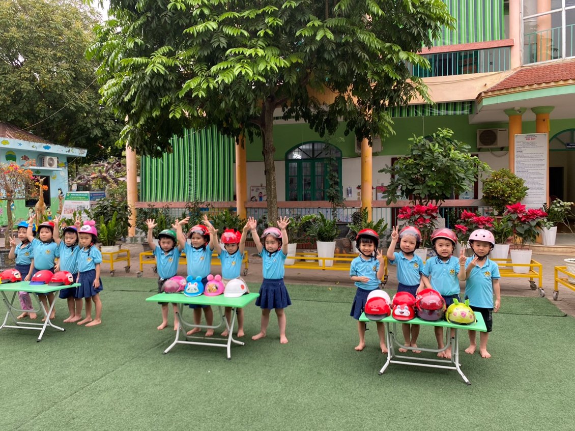 Các bé khối 4 tuổi cùng cô tìm hiểu trải nghiệm các kỹ năng tham gia giao thông an toàn: tìm hiểu về luật giao thông đường bộ . Trải nghiệm đội mũ bảo hiểm đúng cách. Tìm hiểu về các quy tắc tham gia giao thông an toàn, các kỹ năng cắt dán làm biển báo, làm ô tô...