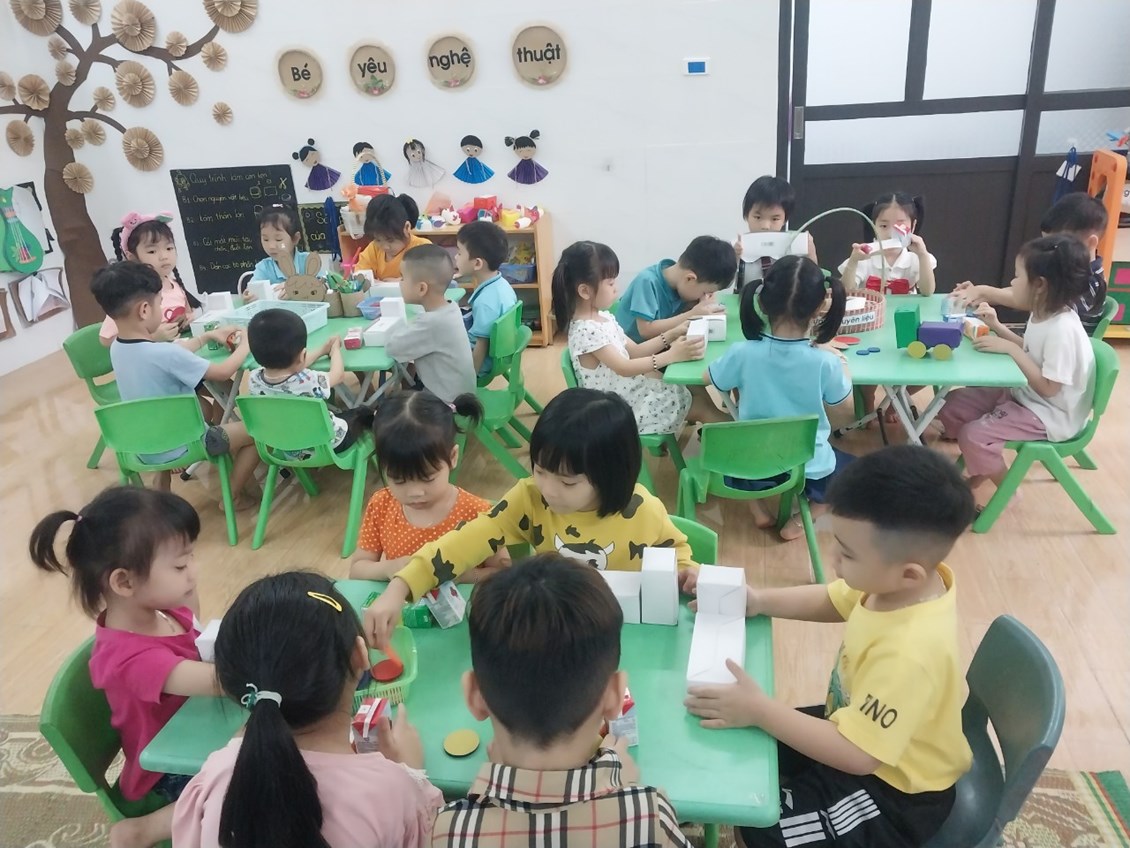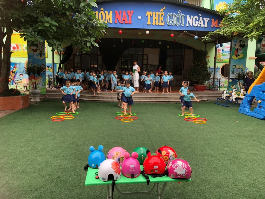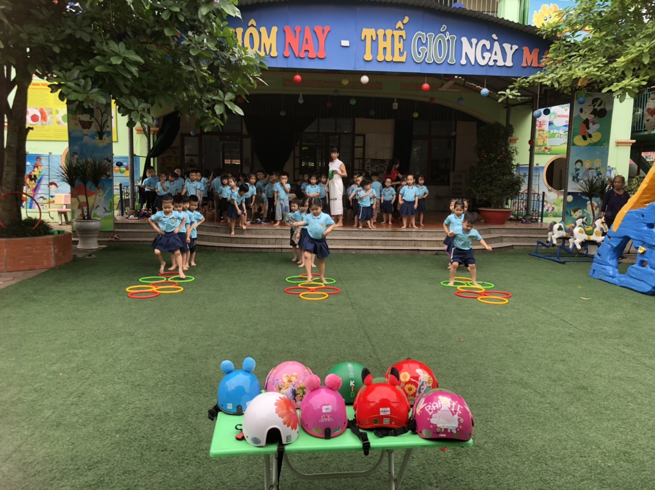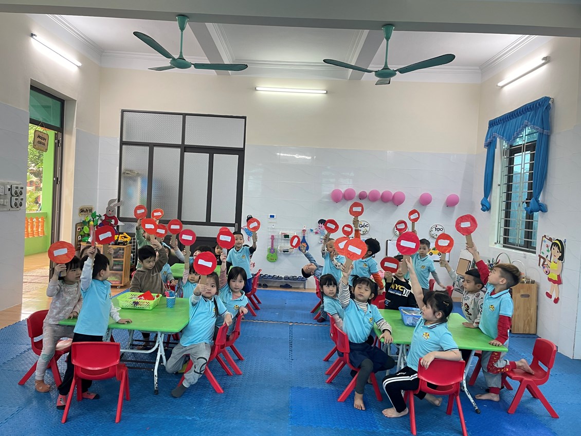 Các bé khối 4 tuổi cùng cô tìm hiểu trải nghiệm các kỹ năng tham gia giao thông an toàn: tìm hiểu về luật giao thông đường bộ . Trải nghiệm đội mũ bảo hiểm đúng cách. Tìm hiểu về các quy tắc tham gia giao thông an toàn, các kỹ năng cắt dán làm biển báo, làm ô tô...
