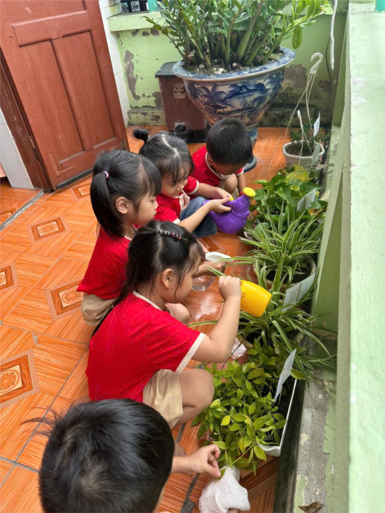 📸 Dưới đây là một số hình ảnh đáng yêu của các bé trong hoạt động chăm sóc cây xanh: