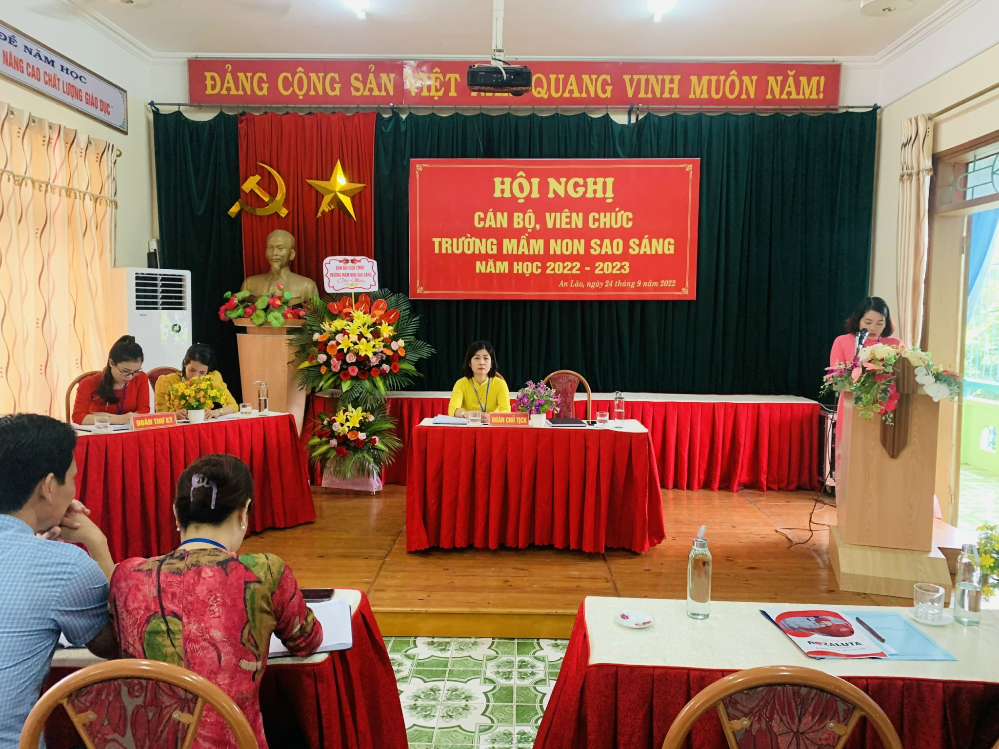Đ/c Hoàng Thị Lan Anh chủ tịch công đoàn đã Báo cáo phong trào thi đua năm học 2021-2022 và phát động phong trào thi đua năm học 2022-2023. thông qua Quy chế phối hợp giữa công đoàn và nhà trường trước Hội nghị!