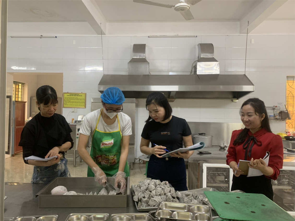 Thực hiện kế hoạch kiểm tra nội bộ trong nhà trường, ngày 30/11/2023 nhà trường tiến hành kiểm tra nội bộ nhân viên nấu ăn để đánh giá việc thực hiện chuyên môn và đánh giá năng lực nhân viên nấu ăn của đồng chí bếp trưởng: Nguyễn Thị Thu Phương- bếp trưởng