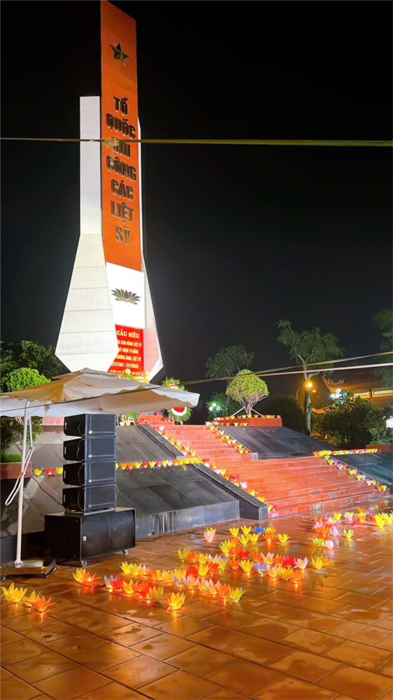 Khi màn đêm buông xuống, trong không gian tĩnh lặng và linh thiêng, ngay tại Đài tưởng niệm liệt sĩ Xã An Lão, hoạt động thả đèn hoa đăng cầu siêu đã được tổ chức. Hàng trăm ngọn đèn hoa được thắp sáng, trôi nhẹ nhàng trên dòng nước – mỗi ánh sáng là một ngọn lửa tri ân, là lời thì thầm tưởng nhớ, là tấm lòng thành của bao thế hệ hôm nay gửi đến các anh hùng liệt sĩ đã hy sinh vì Tổ quốc. Cảnh tượng ấy không chỉ thiêng liêng mà còn lay động trái tim, để mỗi người thầm nhắc mình sống xứng đáng hơn với sự hy sinh cao cả của cha ông.