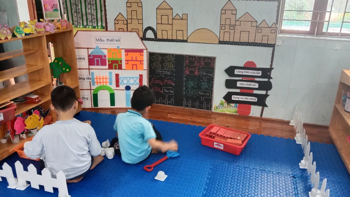 Bé chơi góc xây dựng