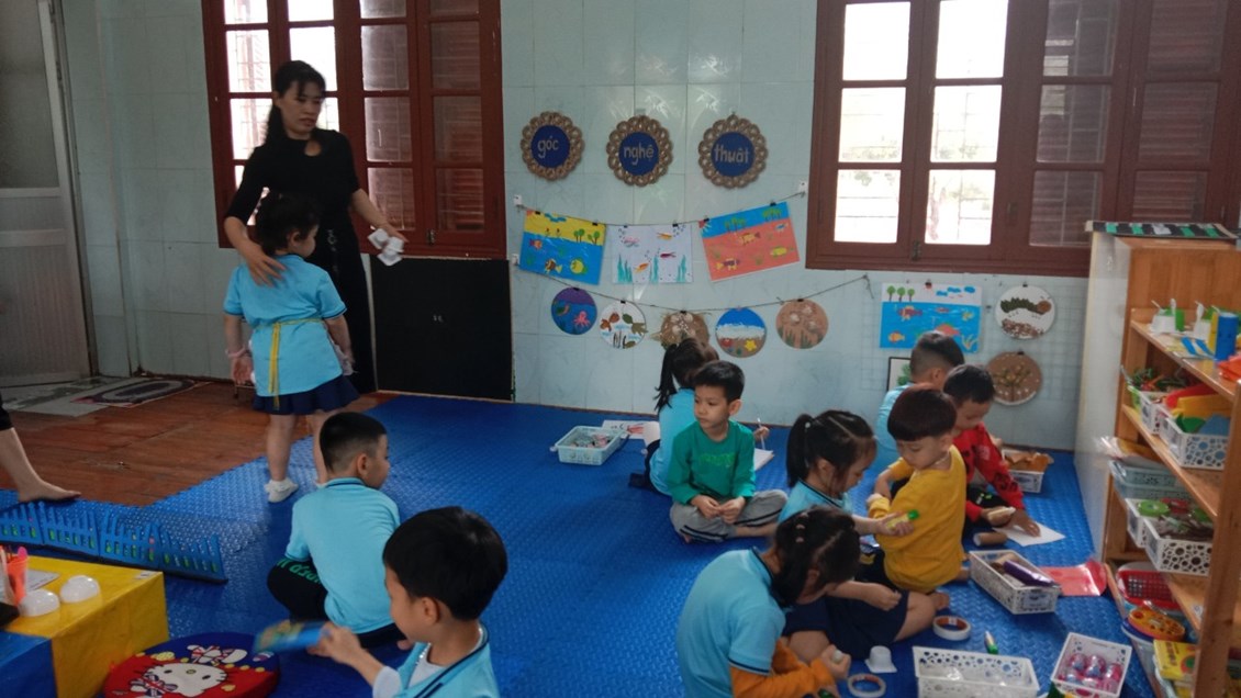 Để đạt được hiệu quả cao khi cho trẻ chơi, giáo viên đóng vai trò hết sức quan trọng từ việc tạo môi trường mở 1 cách hợp lý, đến đưa các nội dung chơi, trò chơi, nguyên vật liệu chơi phù hợp, hấp dẫn thu hút trẻ. Khi trẻ chơi cô giáo đóng vai trò là người bạn quan sát, tác động, xử lý tình huống chơi 1 cách kịp thời, nhẹ nhàng