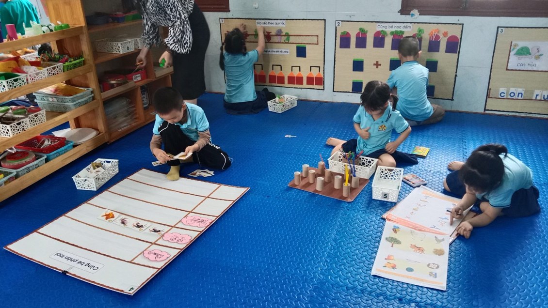 Bé chơi góc học tập