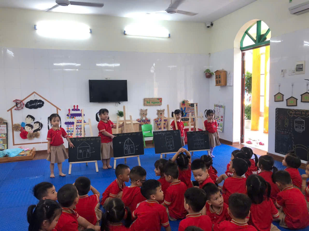 Sau đây là một số hình ảnh dự án Làm ngôi nhà của các bạn nhỏ lớp 4 tuổi B1