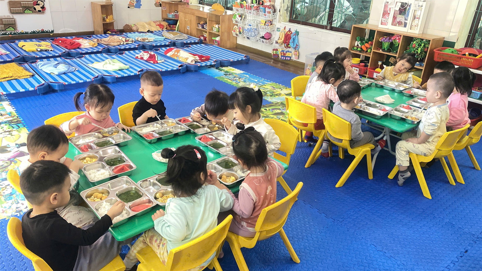 Trong bữa ăn, cô giáo luôn ân cần động viên từng bé: bé nào biết tự xúc cô khuyến khích, bé nào chưa thành thạo cô nhẹ nhàng hỗ trợ. Những ánh mắt chăm chú, đôi tay nhỏ xíu cầm thìa, tiếng cười rộn ràng xen lẫn câu nhắc khéo của cô tạo nên một không gian ấm áp và đầy yêu thương.