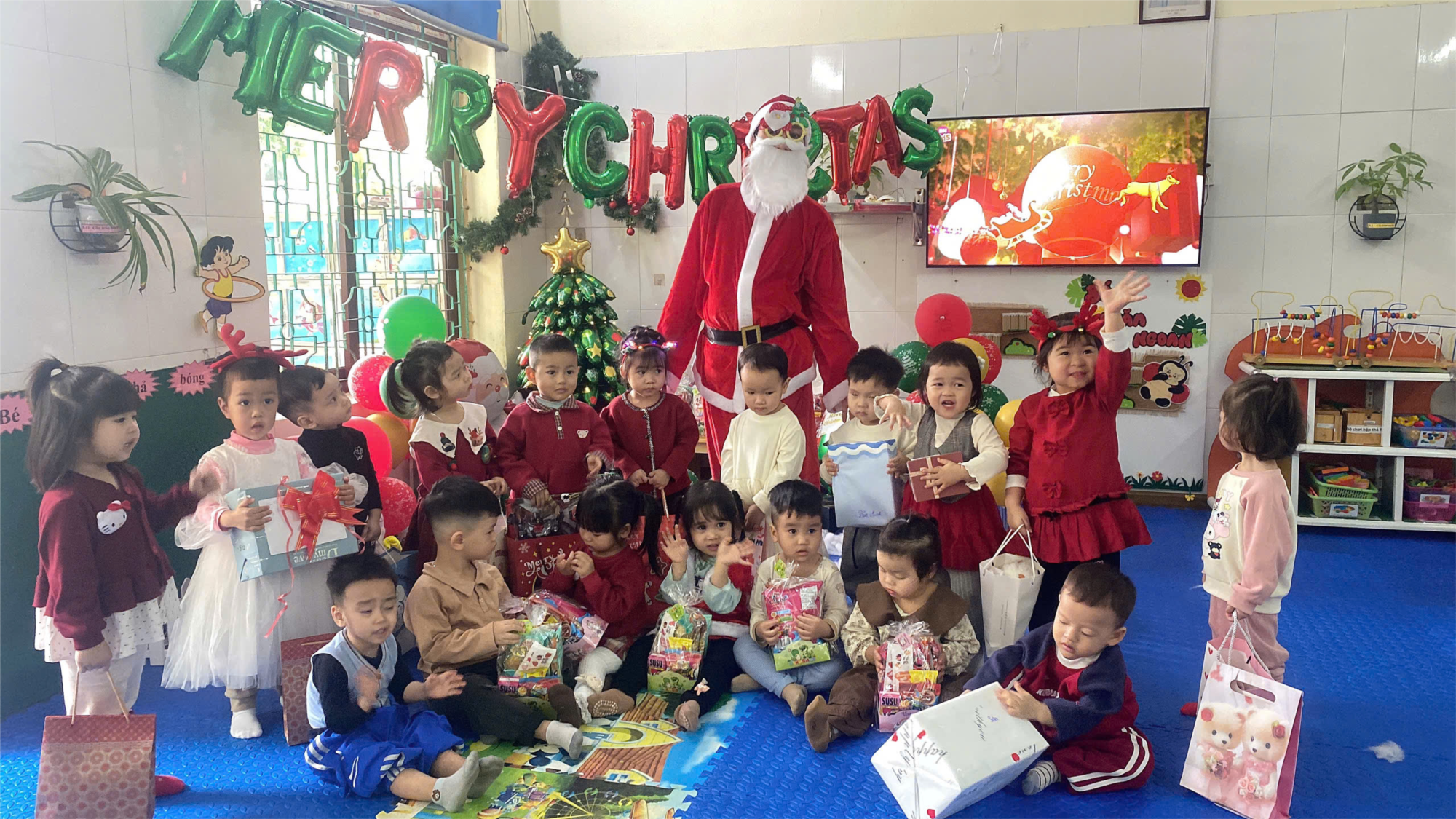 Mùa Giáng sinh đã về mang theo không khí rộn ràng, ấm áp đến với các bé Nhà trẻ. Trong không gian lớp học được trang trí xinh xắn với cây thông, ông già Noel và những món quà nhỏ đáng yêu, các con vô cùng thích thú và hào hứng. Những nụ cười hồn nhiên, ánh mắt rạng rỡ của các con đã làm cho mùa Noel thêm ý nghĩa.