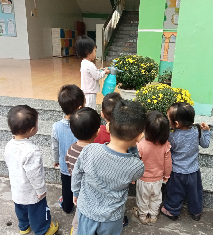 Những ánh mắt háo hức, những nụ cười hồn nhiên của các con khi được tự tay tưới cây chính là minh chứng cho niềm vui và sự hứng thú mà hoạt động mang lại. 🌼
