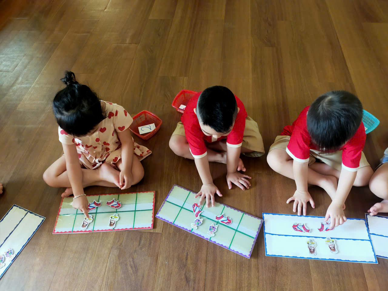 Qua những trò chơi vui nhộn như “Tìm cặp đôi đáng yêu” hay “Ai nhanh hơn”, các con không chỉ biết đếm đúng mà còn học cách so sánh, phân biệt và ghi nhớ số lượng. Mỗi lần nghe cô hỏi “Đây là mấy?” – cả lớp lại đồng thanh hô to “Hai ạ!” trong tiếng cười giòn tan.