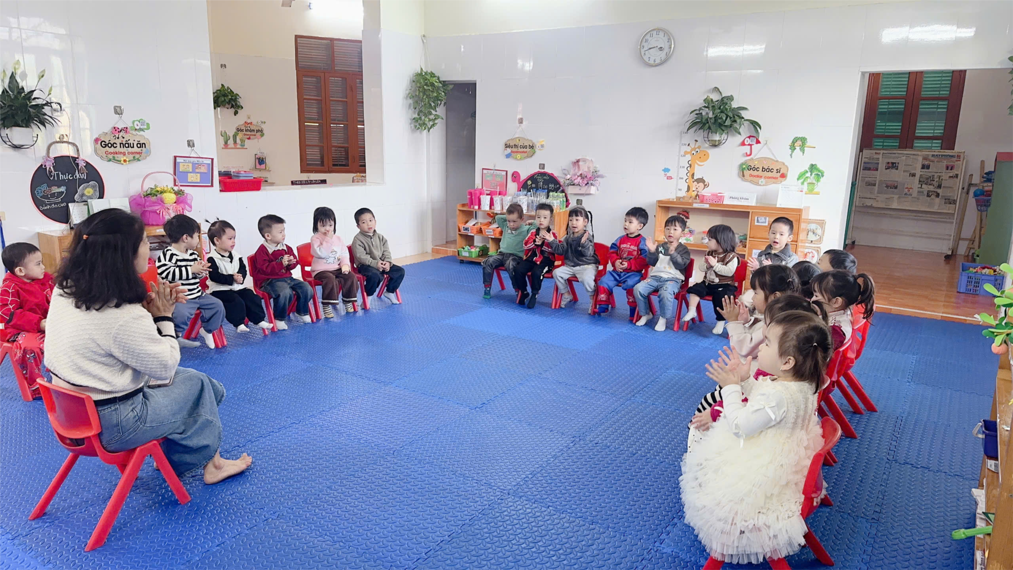 Qua giai điệu nhẹ nhàng và những động tác minh họa đáng yêu, các bé được hóa thân thành những chú cá nhỏ tung tăng bơi lội, vừa hát vừa vận động một cách hứng thú. Hoạt động giúp trẻ phát triển khả năng cảm thụ âm nhạc, rèn kỹ năng nghe – hát và tăng sự tự tin khi tham gia tập thể.