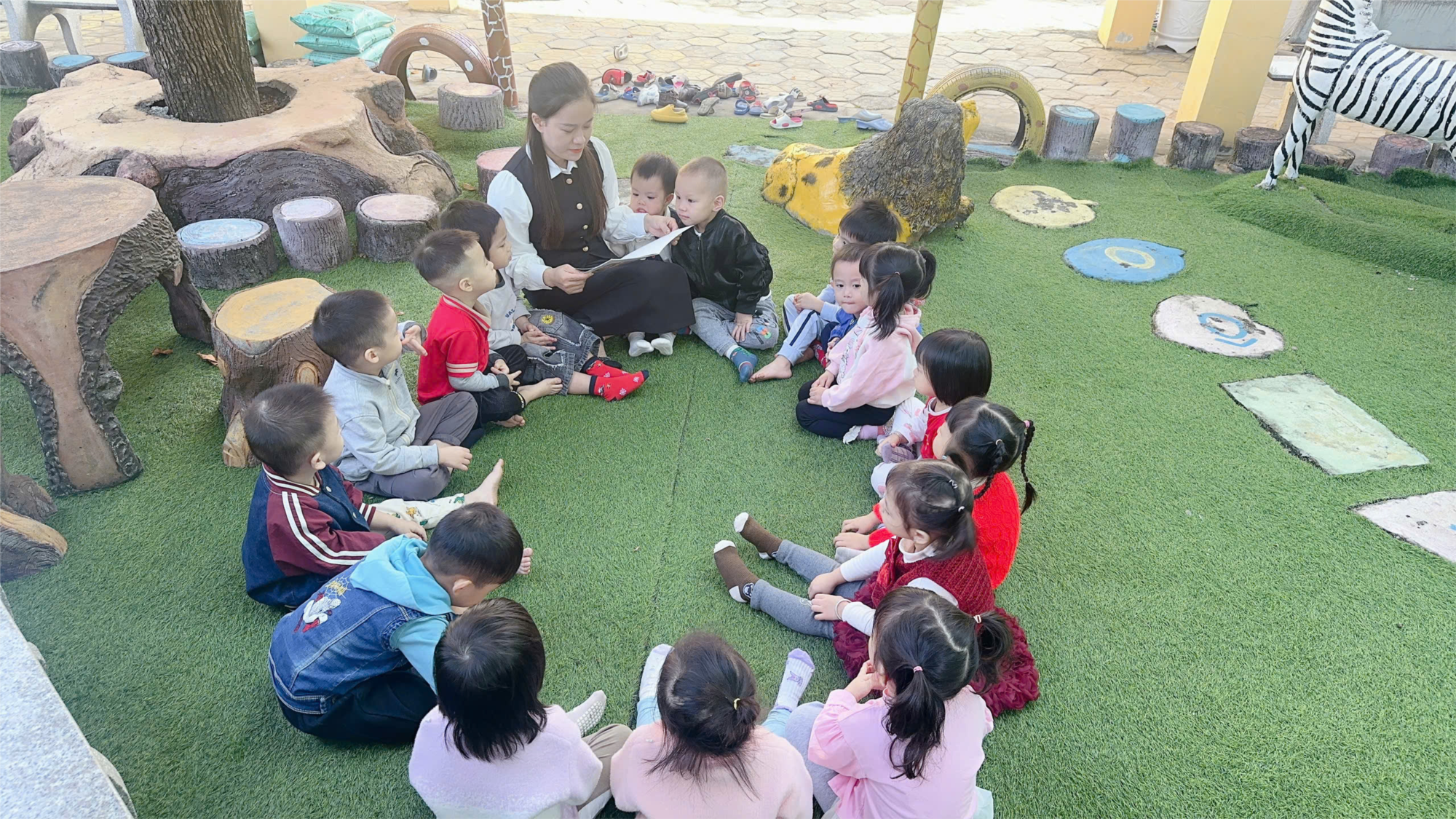 Hôm nay, cô giáo lớp 3 tuổi đã cùng các bé có một buổi đọc chuyện vô cùng thú vị ngay tại sân trường. Trong không gian thoáng mát, dưới những tán cây xanh, các con quây quần bên cô để lắng nghe câu chuyện “Những Điều Kỳ Diệu”.