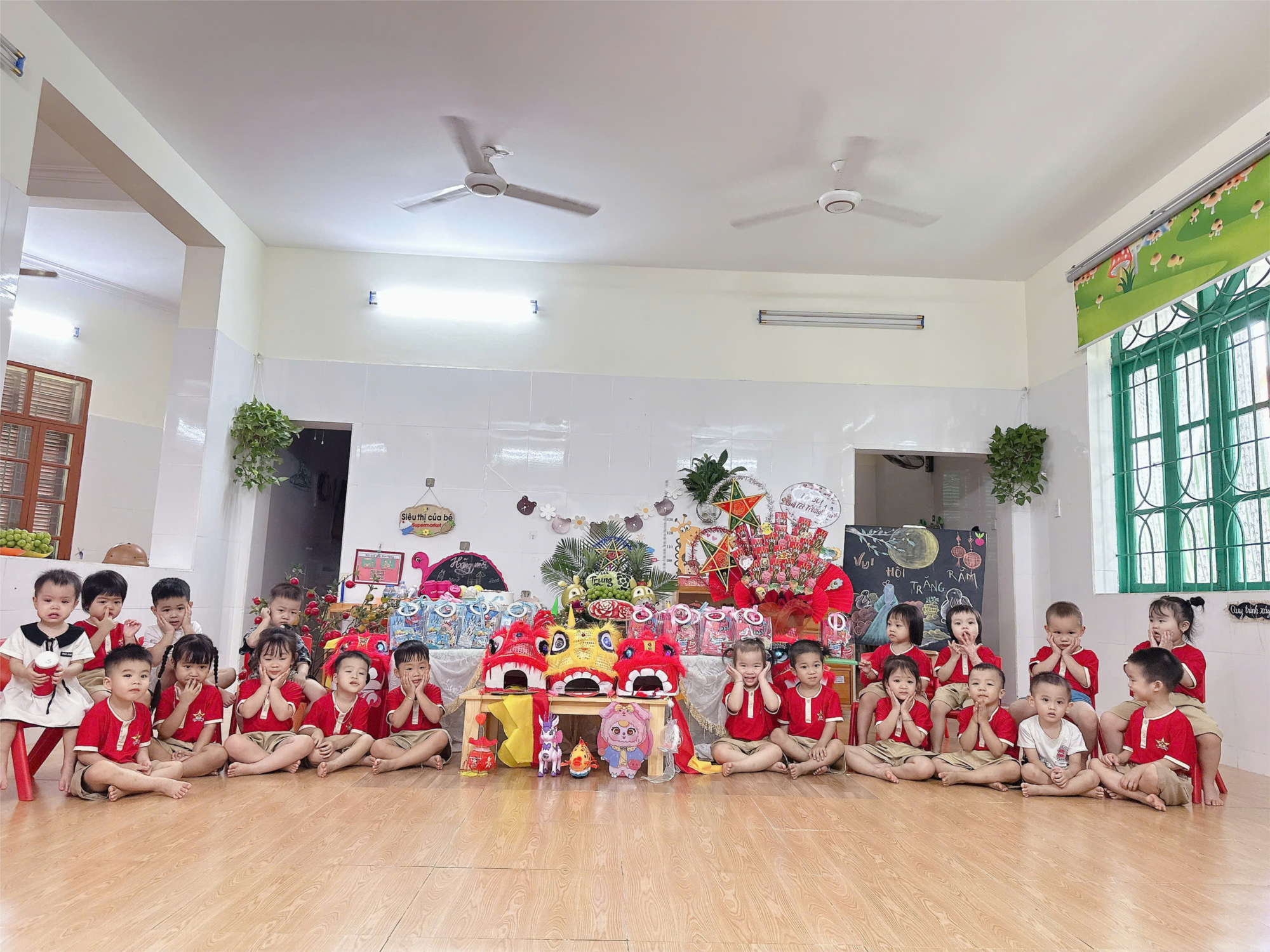 Trong tiếng nhạc rộn ràng, các con được cùng nhau hát vang bài ca Trung Thu, tung tăng rước đèn, cùng bạn bè nắm tay múa hát. Ánh sáng từ những chiếc đèn ông sao nhỏ xinh đã làm sáng bừng cả lớp học, mang lại cho các bé cảm giác ấm áp, thân thuộc như đang sống trong câu chuyện cổ tích.