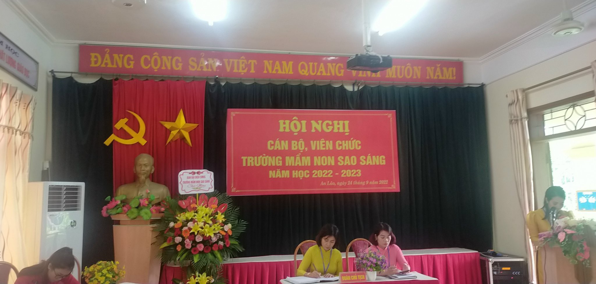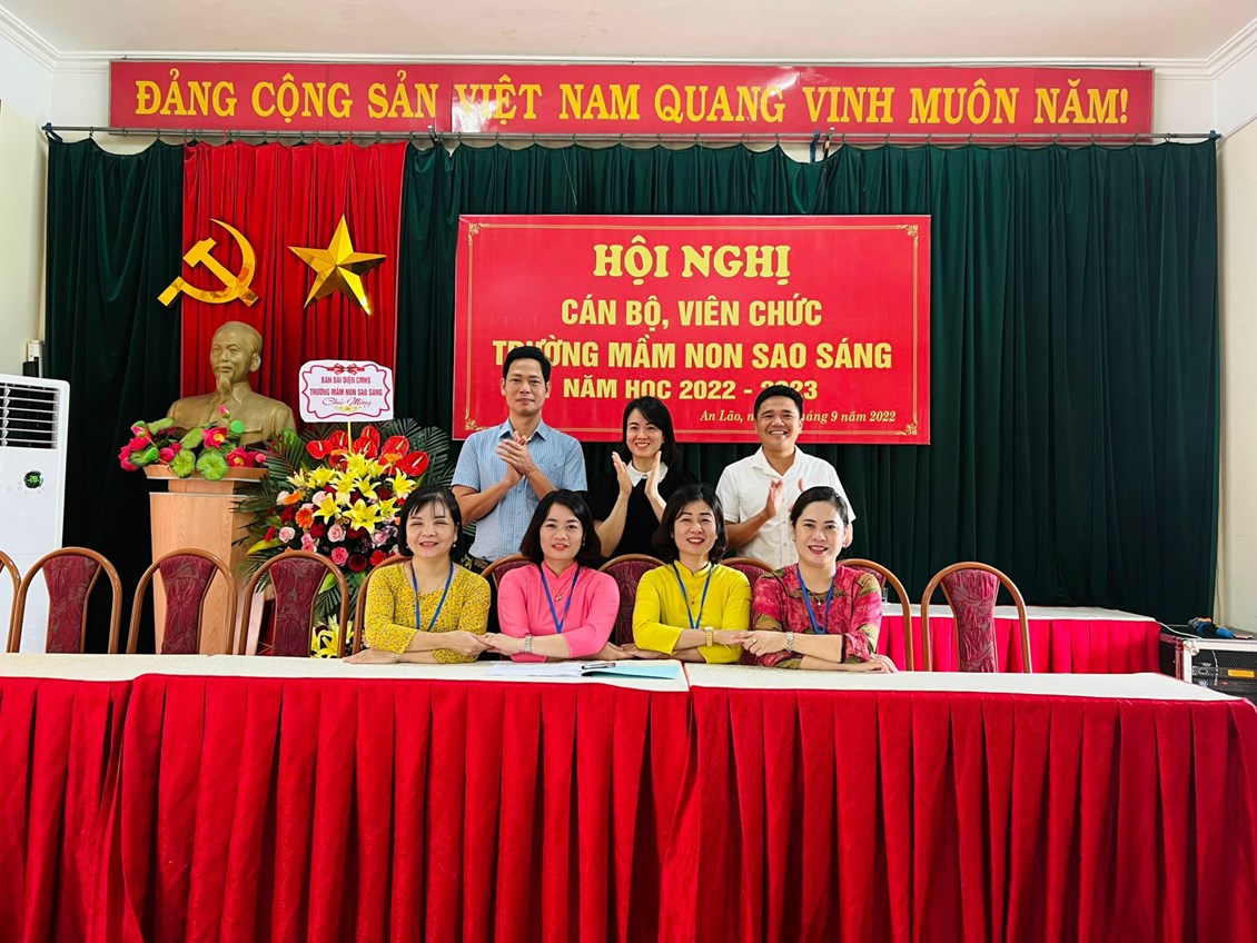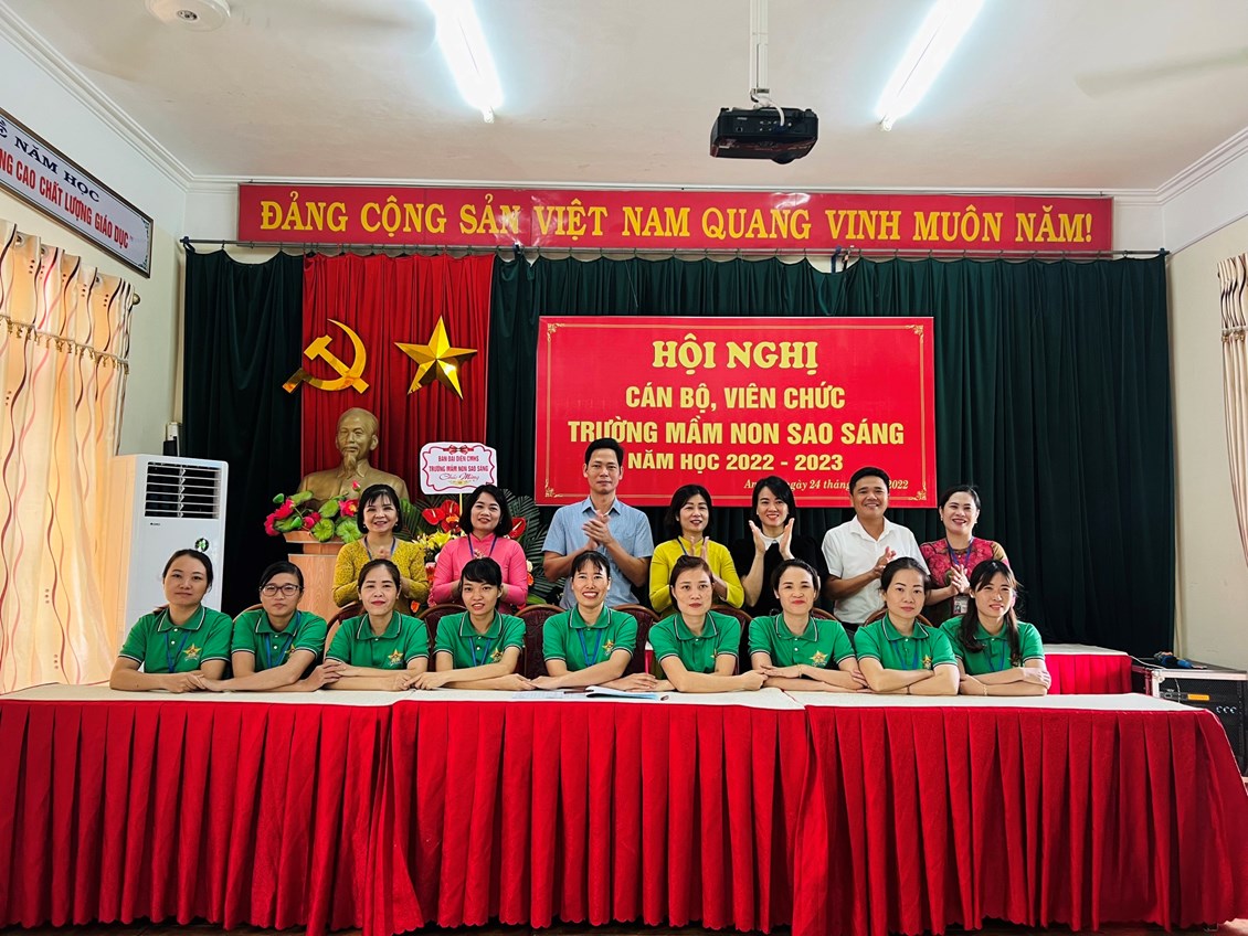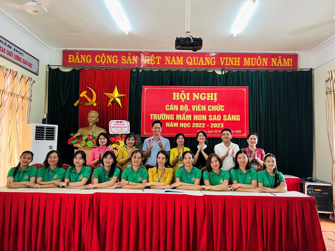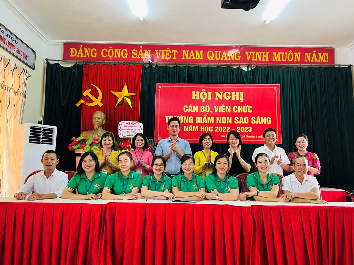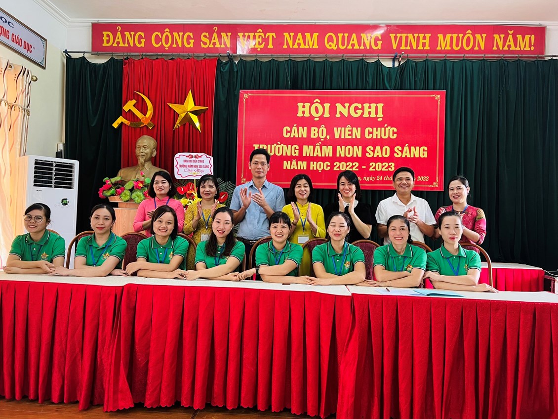 Hội nghị cán bộ viên chức trường mầm non Sao Sáng năm học 2022-2023 đã thành công tốt đẹp. Hơn bao giờ hết, mỗi cán bộ, giáo viên, nhân viên nhà trường càng hiểu rõ trách nhiệm của mình, vượt qua nhũng khó khăn thách thức để hoàn thành nhiệm vụ. Với năng lực lãnh đạo sáng tạo của Ban giám hiệu nhà trường và ý thức, trách nhiệm, lòng nhiệt huyết, tinh thần đoàn kết, nỗ lực học hỏi, phấn đấu của mỗi cán bộ, giáo viên, nhân viên trường mầm non Sao Sáng sẽ có một năm học mới gặt hái được nhiều thành công.