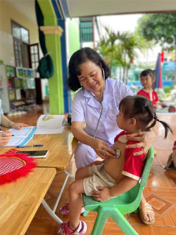 Buổi khám được tổ chức khoa học, đảm bảo an toàn và đúng quy trình y tế. Đội ngũ y, bác sĩ của Trạm Y tế tiến hành khám tổng thể cho trẻ: đo chiều cao, cân nặng, kiểm tra thể lực, khám tai – mũi – họng, răng miệng, mắt, da liễu, tim mạch và các chỉ số sinh lý phát triển khác. Từng kết quả đều được ghi chép cẩn thận, cập nhật vào hồ sơ sức khỏe của trẻ để nhà trường và phụ huynh theo dõi thường xuyên.