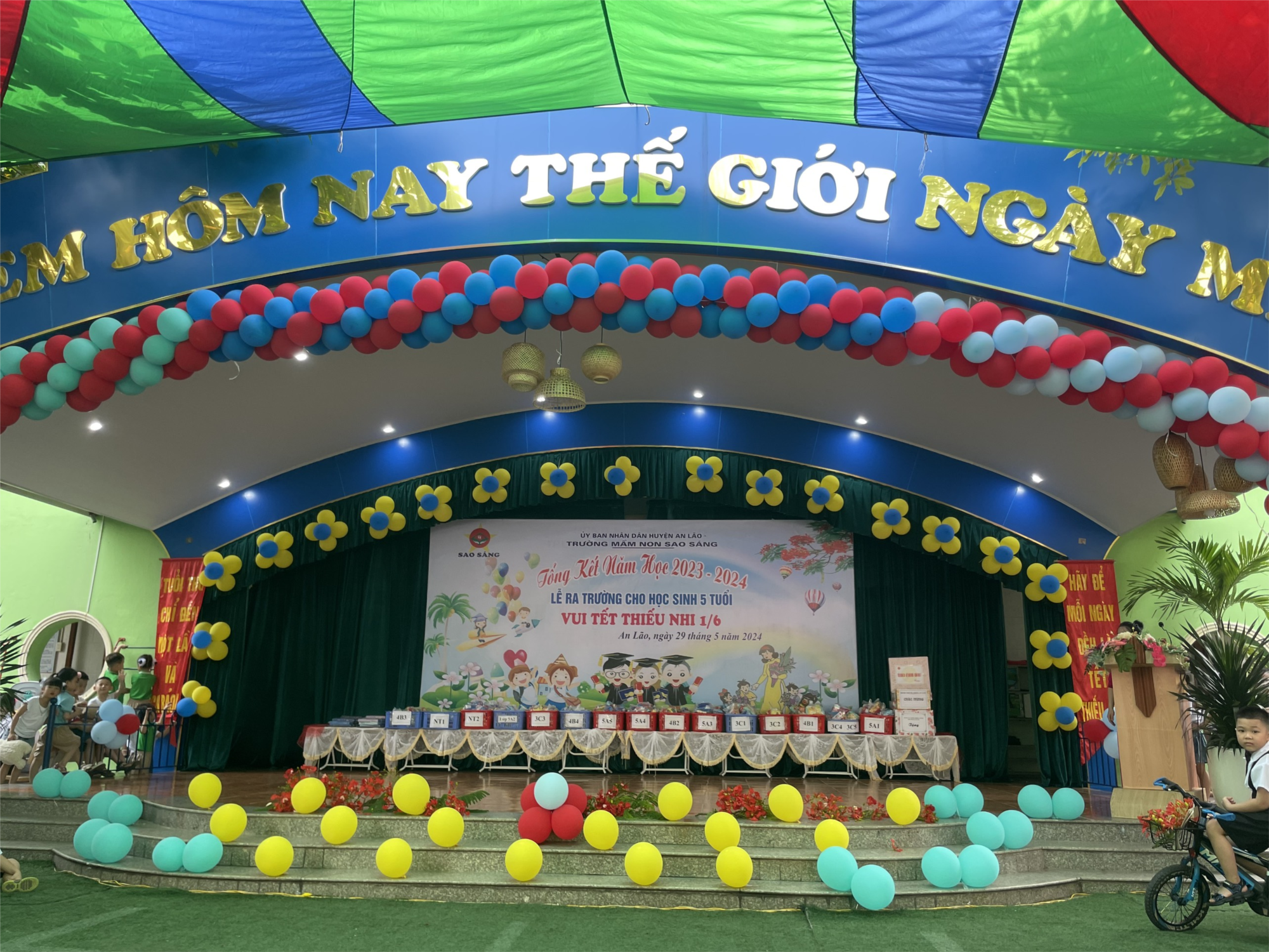 Sáng ngày 29/5/2024, trường mầm non Sao Sáng long trọng tổ chức tổng kết năm học 2023-2024, lễ ra trường cho học sinh 5 tuổi, vui tết thiếu nhi 1/6.