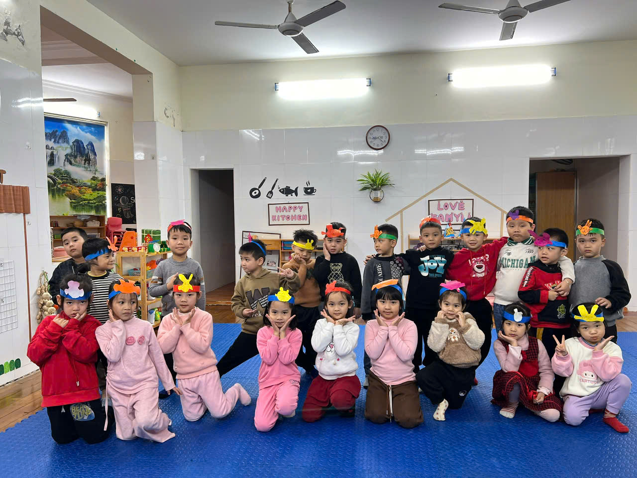 Lớp 5A3 hôm nay, các con được thực hiện hoạt động : Làm mũ múa con Thỏ thuộc lĩnh vực Phát triển thẩm mỹ.
