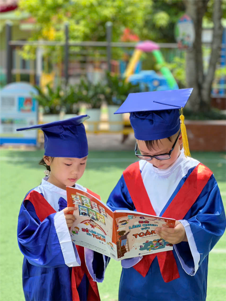 Thời gian trôi nhanh như một cơn gió mát, mới ngày nào các con còn rụt rè, ngập ngừng nắm tay ba mẹ bước vào lớp học đầu tiên. Vậy mà giờ đây, các con đã trở thành những em bé 5 tuổi tự tin, lễ phép và đầy bản lĩnh – sẵn sàng bước vào lớp Một với bao niềm háo hức và mong chờ.