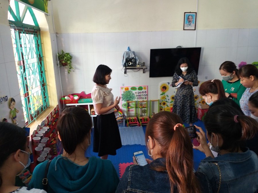 Đ/c Kim Hoa thuyết trình môi trường lớp Nhà trẻ