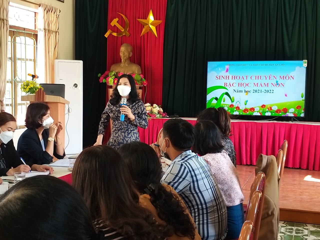 Chiều 03/11/ 2021 PGD&ĐT đã tổ chức buổi SHCM bậc học mầm non tại trường MN Sao Sáng với nội dung "Xây dựng môi trường giáo dục mở trong nhóm lớp mầm non theo quan điểm giáo dục lấy trẻ làm trung tâm". Thành phần tham dự gồm có các đ/c: HT, PHT chuyên môn, GV cốt cán và chủ nhóm lớp MN tư thục cấp phép trên địa bàn.