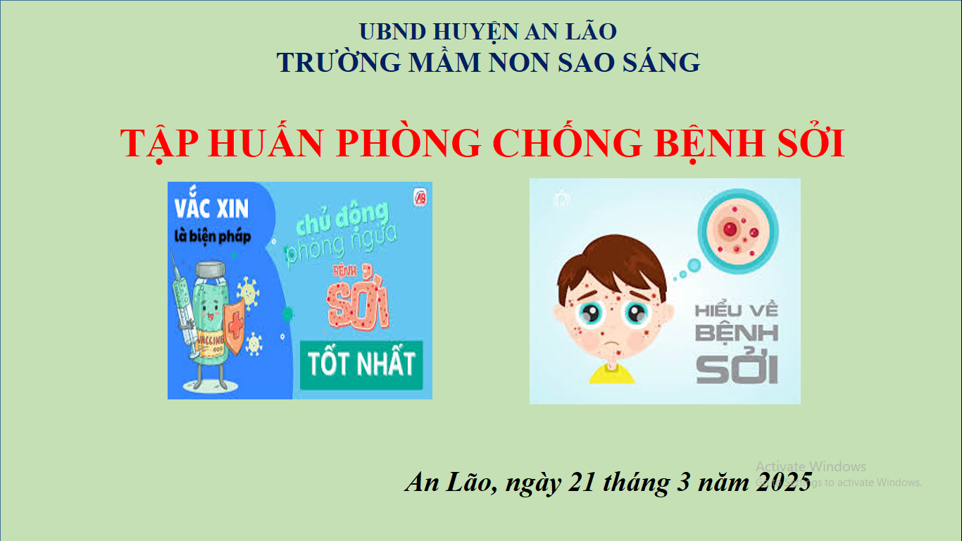 Ngày 21/3/2025, Trường mầm non Sao Sáng tổ chức tập huấn phòng chống bệnh sởi cho CBGVNV trong trường.