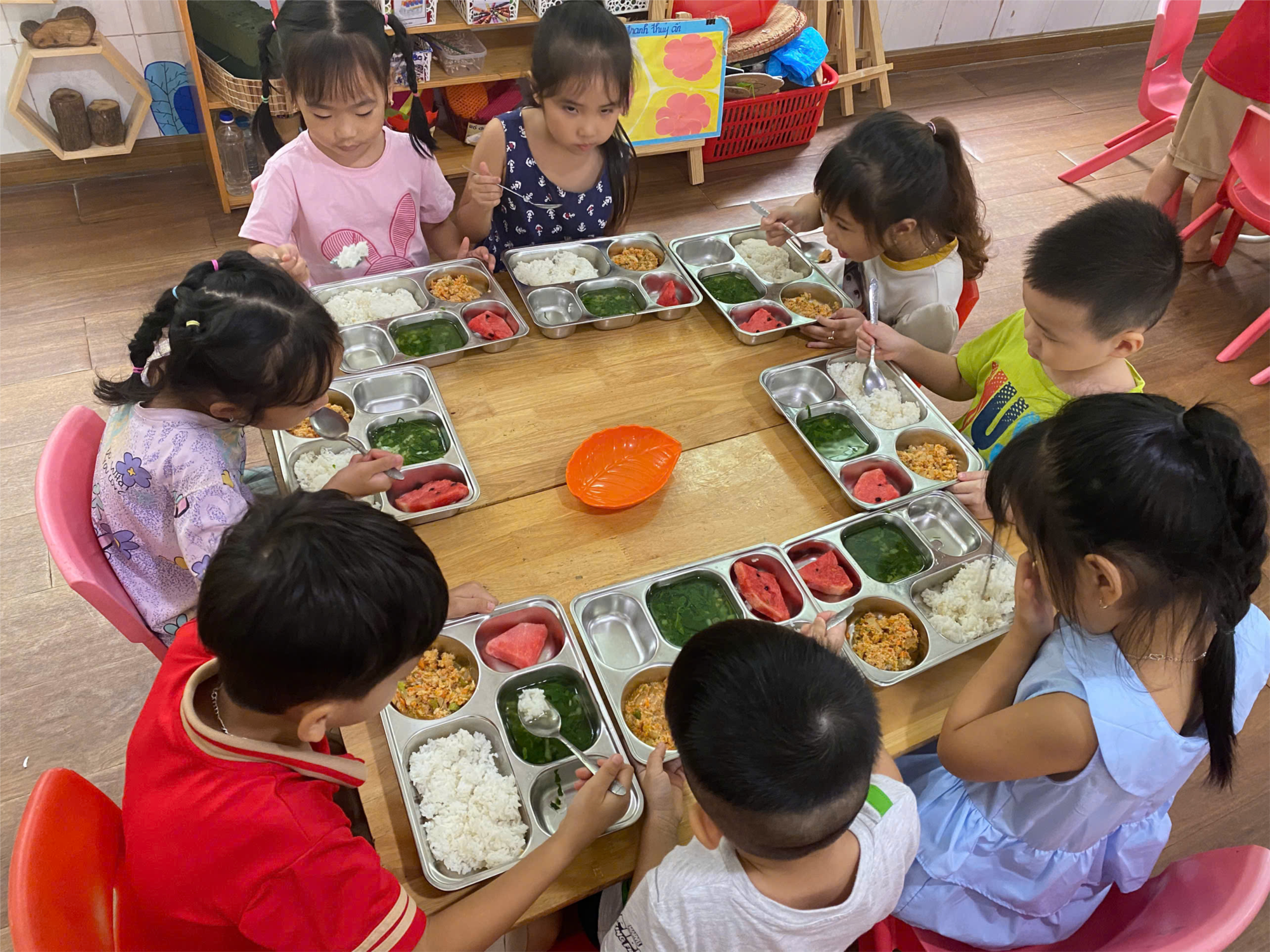 Ban giám hiệu và tổ nuôi dưỡng nhà trường luôn chú trọng đến chất lượng bữa ăn bán trú, không ngừng sáng tạo, thử nghiệm các món ăn mới để đảm bảo:
